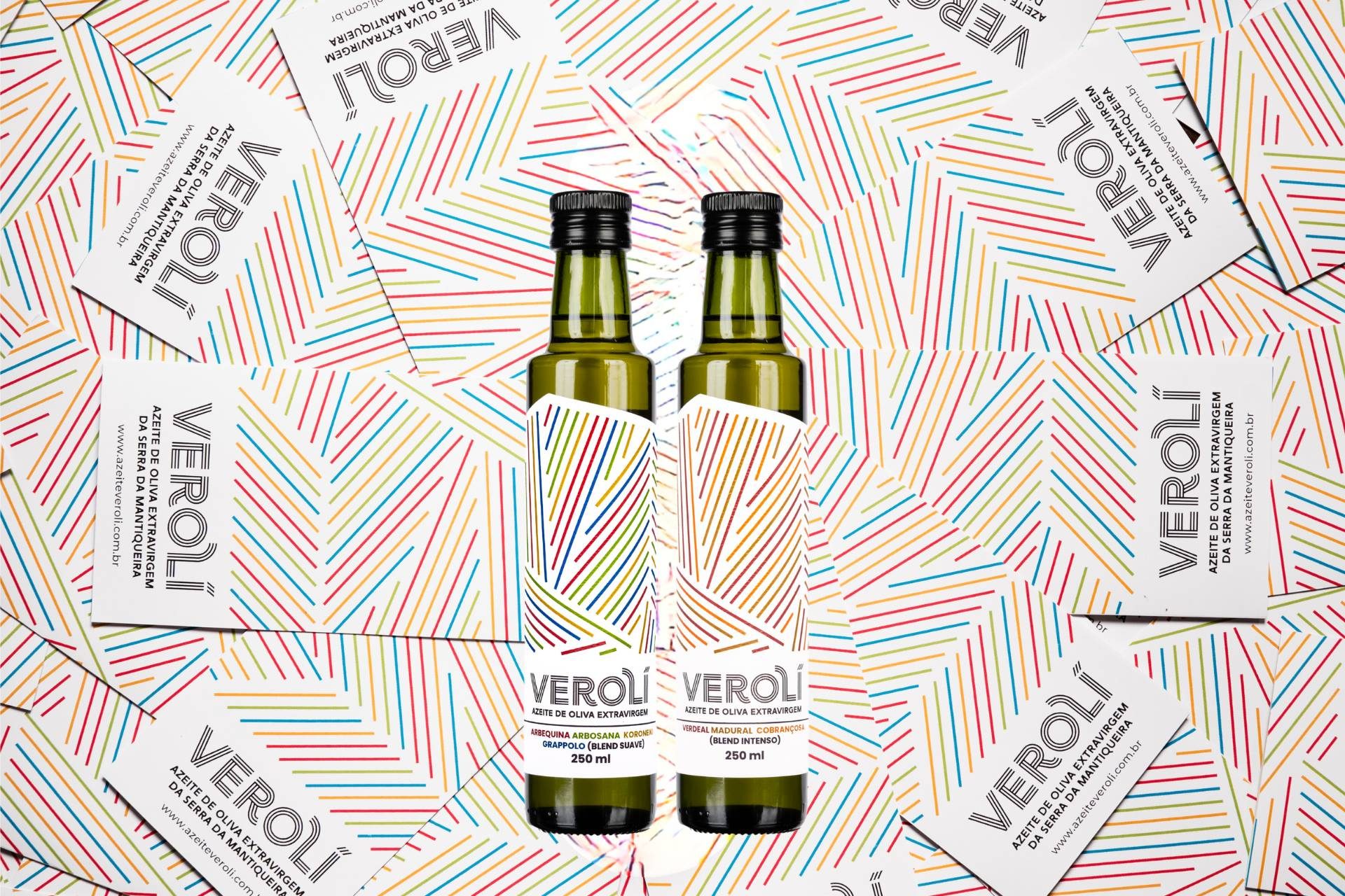 Kit Verolí que inclui 5 azeites – 1 Arbequina, 1 Blend Suave, 2 Blends Intensos e 1 Picual. Garrafas de 250ml.